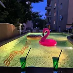 Placeret lige uden for Severna plaz, Хотел Юг Primorsko huser 17 værelser med udsigt over poolen.
